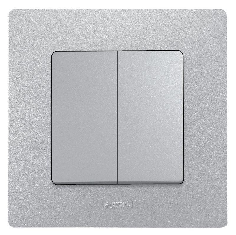 Представляет собой механизм переключателя с двумя клавишами. Цвета "алюминий". Изготовлен из пластика. Монтируется под штукатурку.
