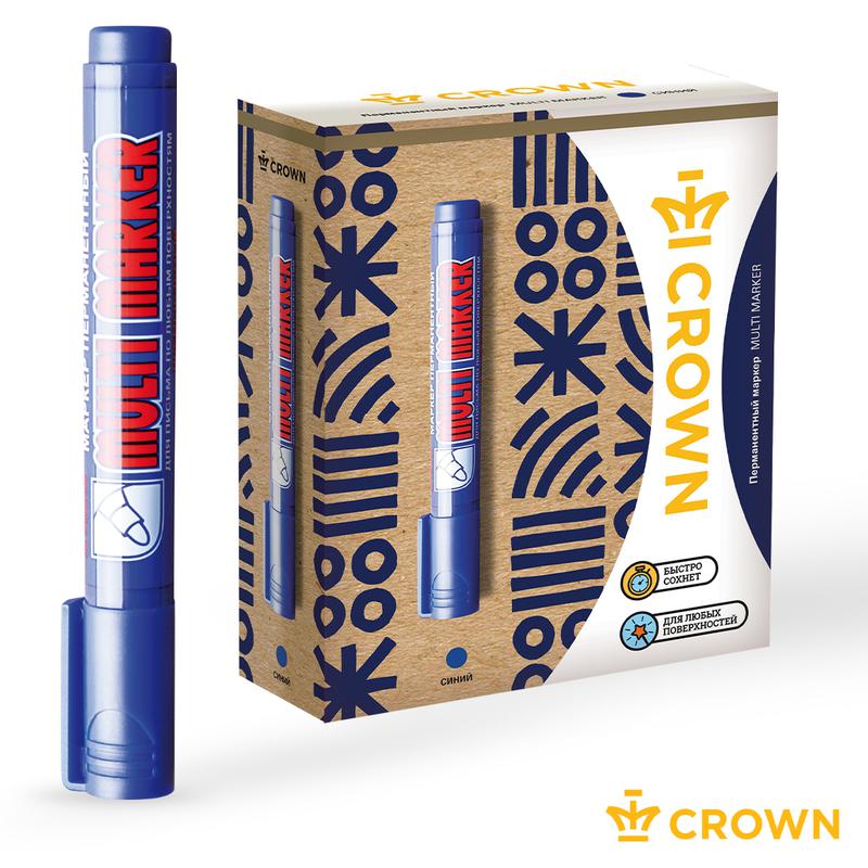 Перманентный маркер Crown "Multi Marker " - универсальное решение для маркировки на всех типах поверхностей: металл, дерево, резина, бетон/камень/кирпич, стекло, пленка, картон и др.