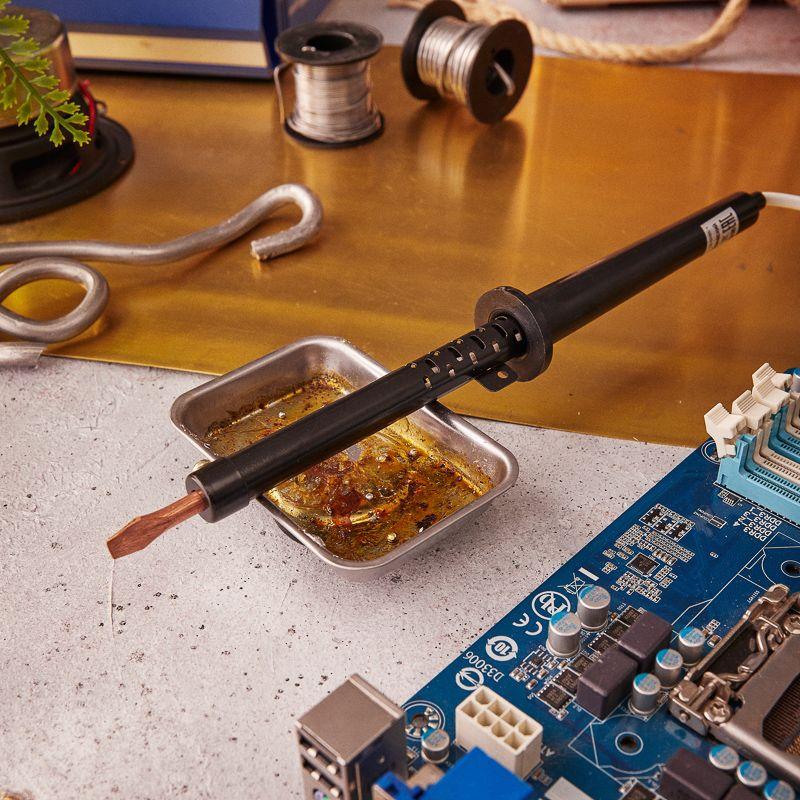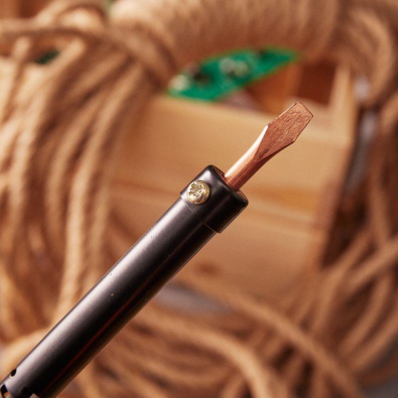 ОписаниеЭлектрический паяльник со спиральным нагревателем (ЭПСН) питается напрямую от сети 220 В, рабочая температура рабочего стержня 450...490 °С, время разогрева до рабочей температуры — 7 мин., класс защиты — II