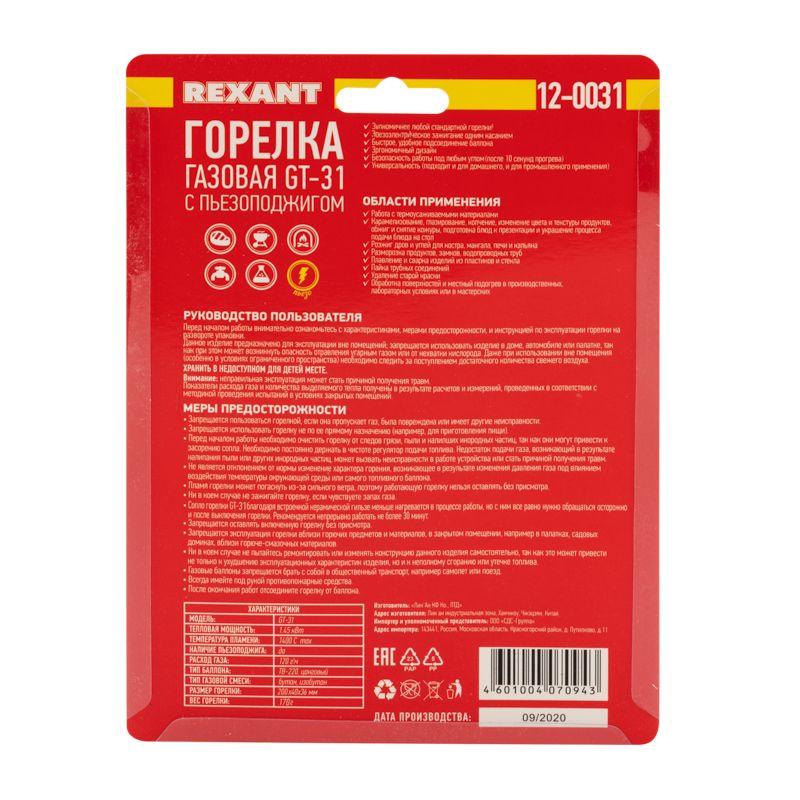 С учетом наличия пьезоподжига, такой горелкой удобно пользоваться одной рукой. В горелке REXANT GT-31 также реализована возможность смены режима горения - путем регулировки на сопле можно выставить либо направленную, либо не направленную струю пламени. Рекомендуется для работы с термоусаживаемыми трубками, перчатками, муфтами; для плавления и сварки изделий из пластиков и стекла; удаления краски; обработки поверхностей на производстве и в лабораторных условиях; для разморозки замков, водопроводных труб, продуктов; для копчения продуктов или карамелизации десертов; для украшения процесса подачи блюд; для работ в саду и огороде, для быстрого и экологичного поджига дров, угля.