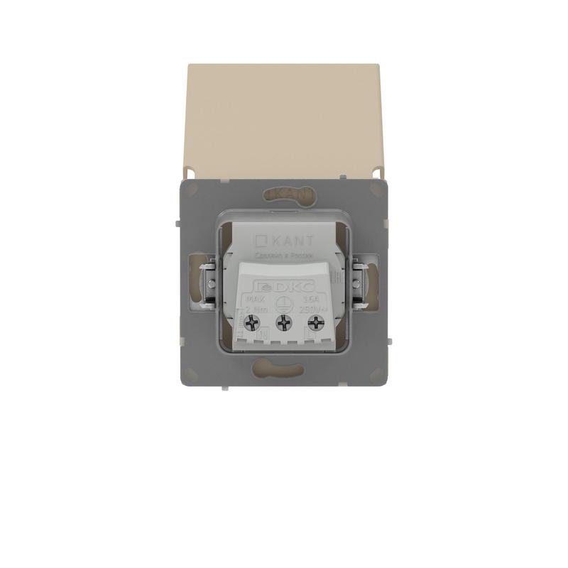• Розетка силовая KANT IP44 2P+E защ. шторки с крышкой ванильн. марципан DKC 7015013